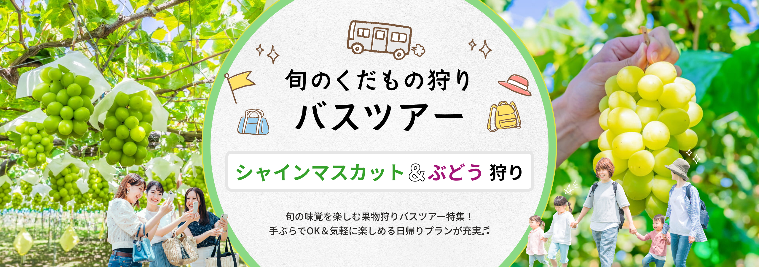 種がなく皮ごと食べられる大人気のシャインマスカット!一般的に糖度は15度~20度程度といわれており、大粒で芳醇なマスカットの香りが口いっぱいに広がる贅沢な味わいは、近年、多くの人々を魅了しています!HISのシャインマスカットツアーではもぎたて狩り食べ放題プランをはじめ、自分で選んで収穫できる1房狩りプラン、お土産プランなどさまざまなコースをご用意!