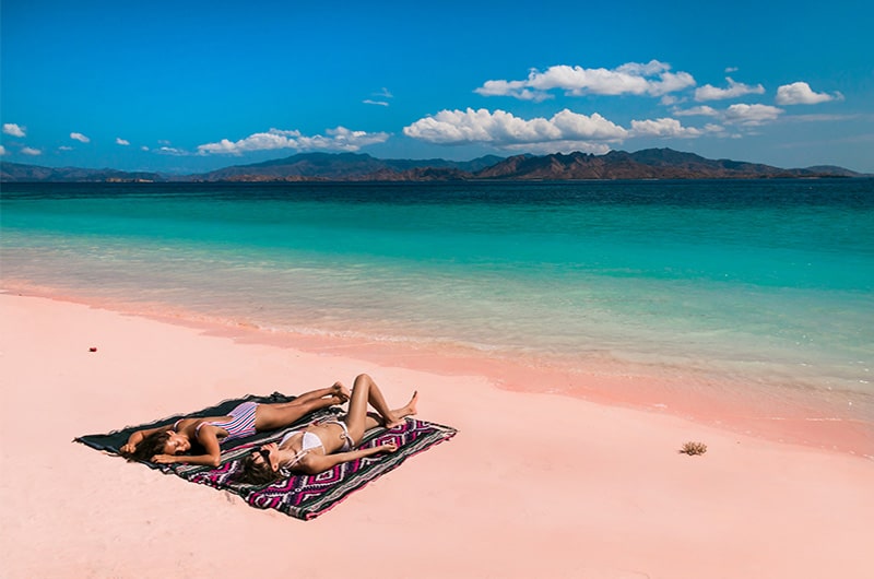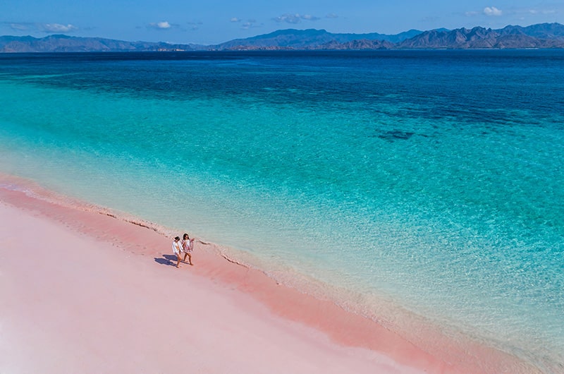 パダール島の見どころの1つ。赤いサンゴが長い年月の間に波に削られ、白い砂と混ざり合った結果、美しいピンク色のビーチになったそうです。実は正式名称のピンクビーチと言えばコモド島ですが、パダール島のピンクビーチのほうが美しいピンク色と言われています。また、ピンク色の砂浜の横には澄んだ青色の海があり、幻想的な色合いを見ることできます。