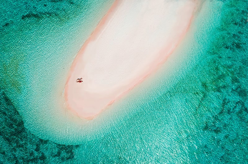 美しいエメラルドグリーンの海に浮かんでいるかのような、砂だけでできた島は干潮時に姿を現します。それは、思わず叫んでしまいそうになるくらいの美しさ!