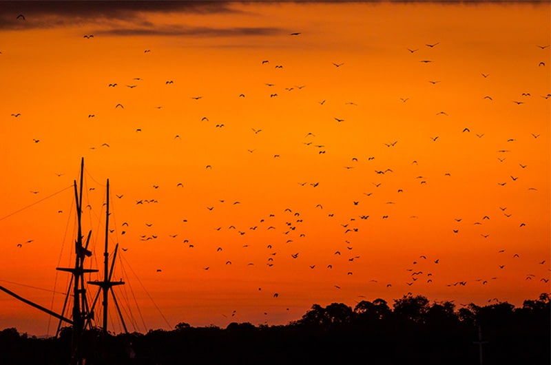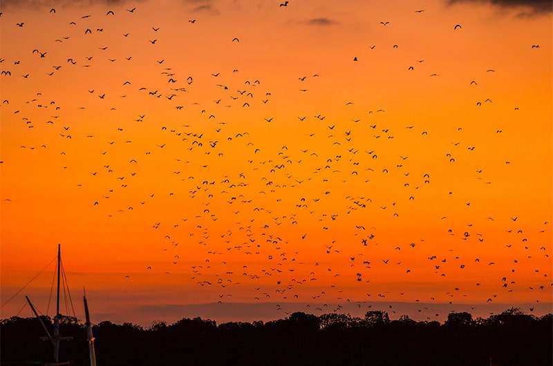 カロン島では、夕暮れ時になると何千匹ものフルーツバット(コウモリ)が一斉に空へ飛ぶ姿を見ることができます。その光景は、普段の生活では見ることができない素晴らしい神秘的な光景です。一日を感動で終えることができる自然が生み出した絶景をぜひ体験してみてください。