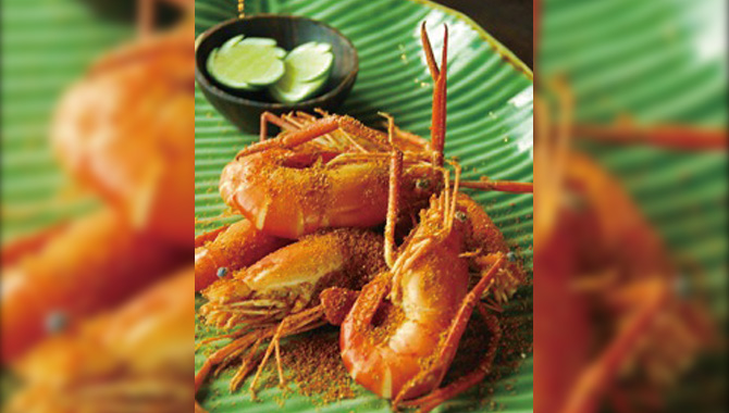 エビがメインのシーフード料理店。海老のプリプリ感と甘辛ソースの味は、病みつき!