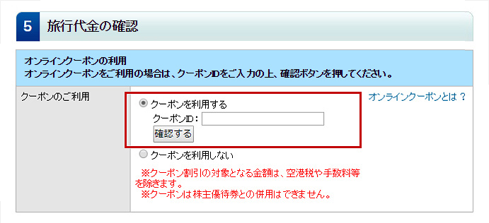 「クーポンを利用する」を選択し、上記クーポンIDをご入力ください。
