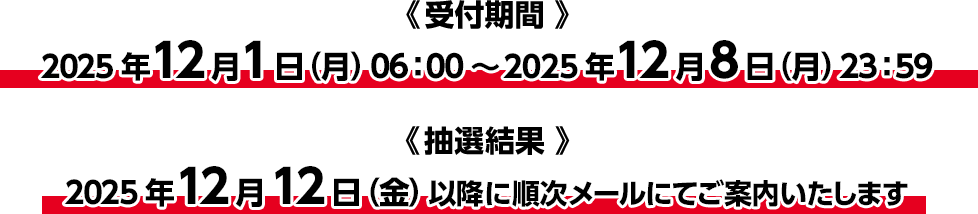 - 抽選の結果の通知方法は受付フォームにてご確認ください。