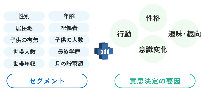 従来の性別や年齢、職業といった属性でのセグメンテーションでは見えてこなかった「なぜそのブランドを選ぶのか」まで分析可能です。そのため、ターゲットを絞った効果的な商品開発や宣伝ができ、売上増や広告費削減などの効果が期待できます!