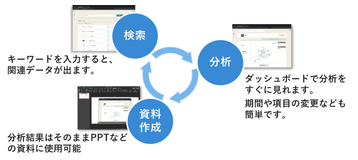 データ収集や資料作成において、大幅な業務効率化で残業代などのコストも削減できます!