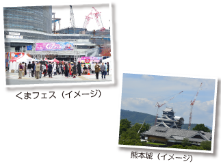 ※出発1時間前までに各自にてチェックイン 【羽田発着プラン】 08:20~09:50 羽田空港発 10:15~11:45 熊本着 【伊丹発着プラン】 09:25~10:30 伊丹空港発 10:35~11:55 熊本着 ご到着後、専用車にて「くまフェス」会場へご案内いたします。 |