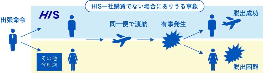 さらに、HISで手配した海外出張なら「緊急避難サービス」にも対応