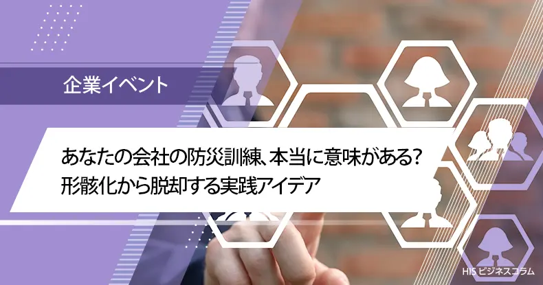 まずは、今年の防災訓練に「自分ごと化」の工夫を一つ取り入れてみませんか?また、HISでは企業のイベントの企画から運営、貴社の課題に合ったサポートをしておりますので、お気軽にご相談ください。