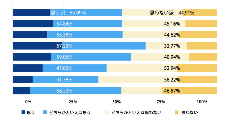 全体の55.09%が福利厚生が充実していると感じており、福利厚生が充実していないと感じる44.91%よりも高い結果となっています。