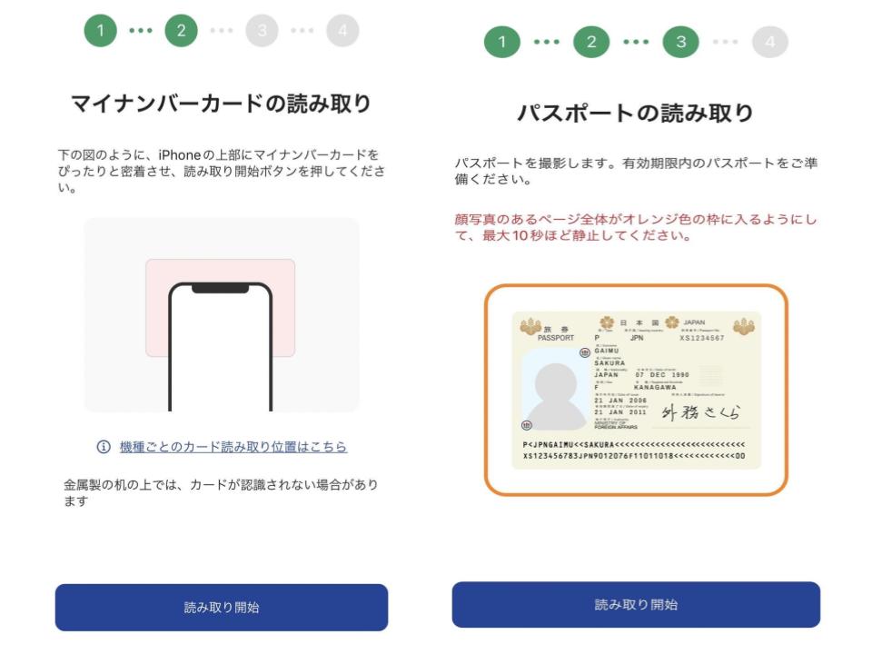 ④ マイナンバーカードとパスポートの読み取り