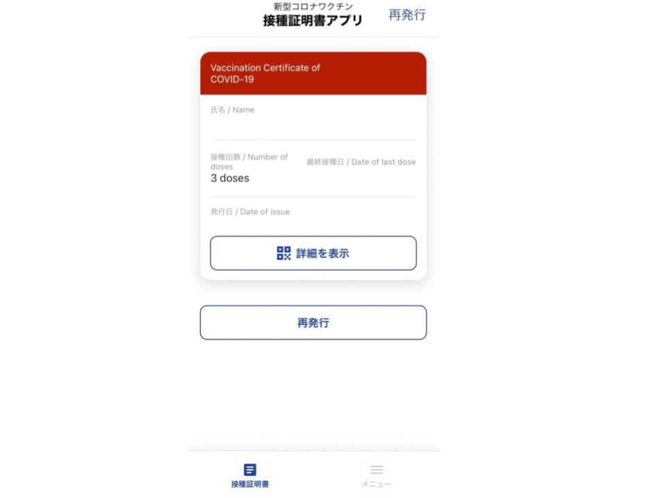 海外用の名前データに関してはパスポートのICからデータをとるため、パスポートに記載の名前でワクチン接種証明書が発行されます。もしパスポートの名前が旧姓だが、新姓で海外用のワクチン接種証明書を取得したい場合は、パスポートの更新を行った後にアプリより証明書の取得をお願い致します。