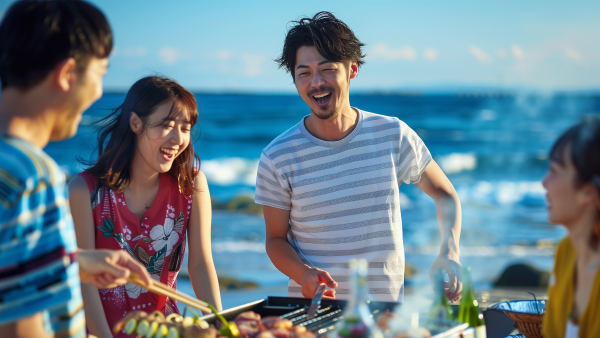 海辺でのBBQやチーム対抗アクティビティなど、共同体験を通じて交流を深めます。