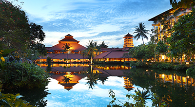 バリ風の水の宮殿スタイルで、休暇をゆっくりと過ごすのに最適です。バリ風ステージのレストランでは、インドネシア料理を始め様々な料理と伝統パフォーマンもお楽しみいただけます。