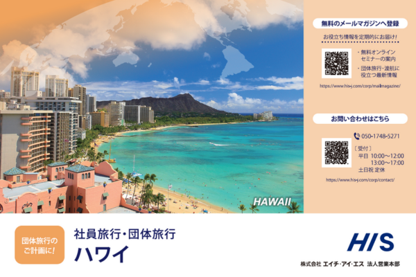 ハワイの魅力やモデルプラン、観光スポット、団体旅行ならではのおすすめオプショナルツアーなどをご紹介します。
