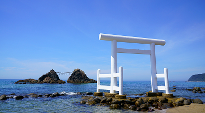 青い海と白い砂浜が広がる絶景の宝庫!「桜井二見ヶ浦」の白い鳥居など写真映えスポット、海沿いのお洒落なカフェ巡りが楽しめます。新鮮な野菜や海鮮などの糸島グルメも魅力。
