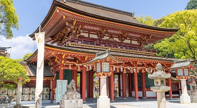 太宰府市にある、「学問の神様」菅原道真公を祀る天満宮の総本宮です。受験合格や学業成就を願う参拝客で賑わい、老舗の梅ヶ枝餅の食べ歩きや、四季折々の梅や菖蒲が彩る美しい景観も魅力です。