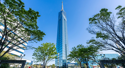 全長234mの日本一高い海浜タワーです。8000枚のハーフミラーで覆われた姿は「ミラーセイル」の愛称で呼ばれ、展望台からは博多湾や街並みを一望できます。