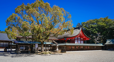 世界遺産にも登録された日本最古の神社の一つ。三女神を祀り、古くから交通安全の守護神として全国的に有名です。圧倒的な歴史と神聖な空気を感じられるパワースポットです。