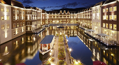 アムステルダムの名門ホテルを再現した「ホテルヨーロッパ」。100年の伝統を誇る豪華絢爛な空間は、細部までこだわり抜かれた装飾が施され、至福のセレブ気分を味わえます。