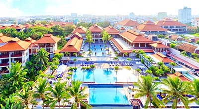 ダナンビーチを見渡せるフラマリゾートは、ホイアン旧市街(20分)、ミーソン遺跡(90分)、フエ(2時間)の3つの世界遺産への玄関口となり、伝統的なベトナム様式とフランス当地時代のコロニアル様式でデザインされた上品な客室の装飾が特徴で、各国の著名人にも愛されたホテルです。