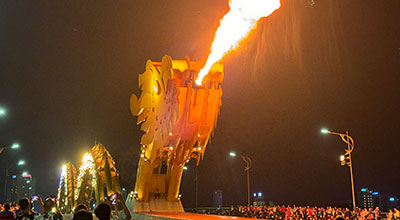 ダナンの景色を見下ろせるソンチャー半島のリンウン寺観光や、 週末にしか見ることのできないドラゴン橋のショー鑑賞など、夜も楽しめる人気のツアーです。