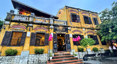 ホイアンの中心を流れるトゥボン川沿いにある好立地のレストラン。ホイアンと日本の文化交流を再現した店内では、ホイアン料理やベトナム料理をお召し上がりいただけます。テラス席では幻想的な灯篭流しを眺めながら食事を楽しむこともできます。