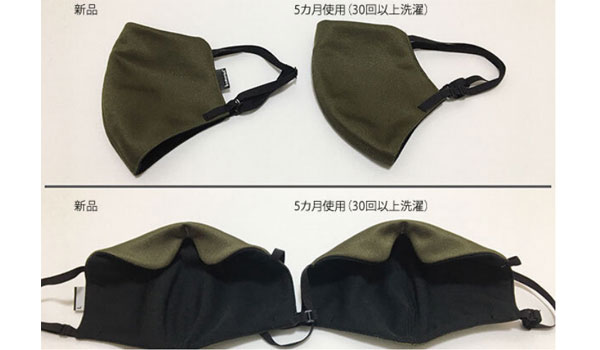 (下記:新品と比較画像)。表側も内側もシワにならず、毛玉なども発生しておりません。また耳ゴムも伸びることなく柔らかい伸縮を保っています。