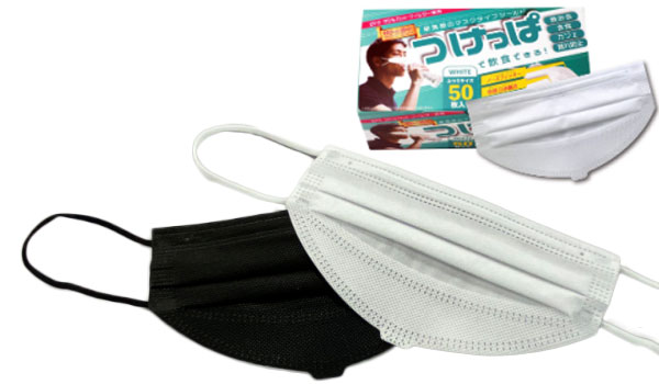 そこで今回、政府や各地方自治体が発信している新しい会食ルール「マスク会食」に最適な、着用したまま飲食できる不織布製のマスク型シールド『つけっぱ』をご紹介します。