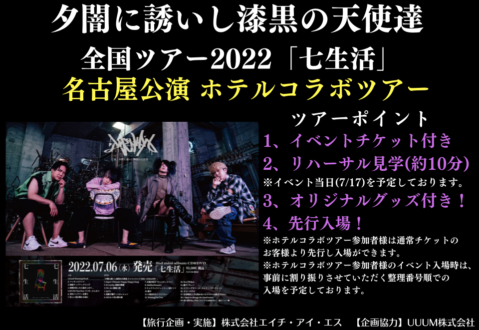 - 宿泊パッケージとなります。宿泊ホテル、イベント会場までの交通は、お客様ご自身にてご移動となりますので、予めご了承ください。