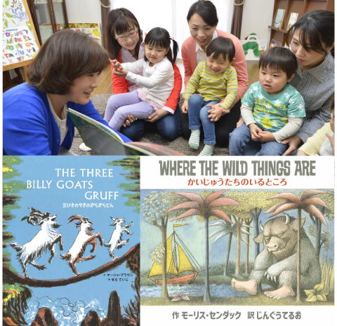 ・英語教室Labo Partyの教材の一部を、教室に通われる会員以外の方もご購入いただけます。書店などで展開しているCD付き英語絵本『かいじゅうたちのいるところ』や『三びきのやぎのがらがらどん』は、英語・日本語でCDに収録されており、文字が読めなくても楽しく英語に親しむことができます。