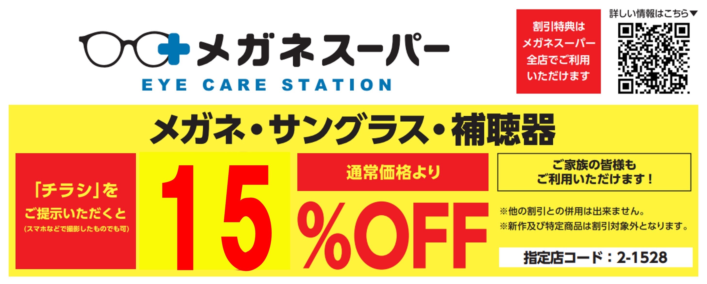 【メガネスーパー】 メガネ・サングラス・補聴器 特別価格のご案内