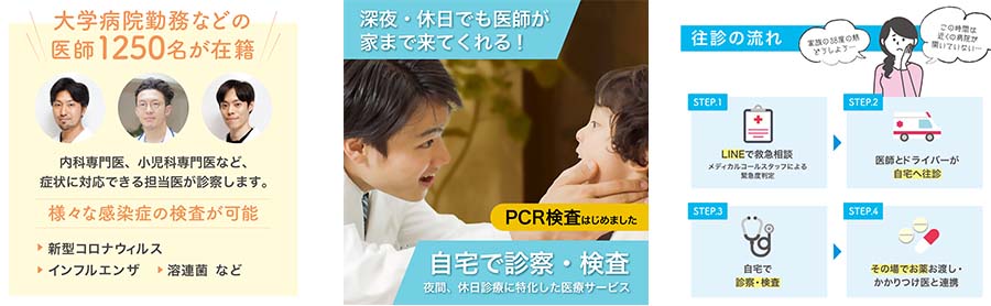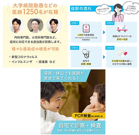 オンライン診療で医師とテレビ電話で診察し、医師が必要と判断すればご自宅にすぐさま医師を派遣可能です。