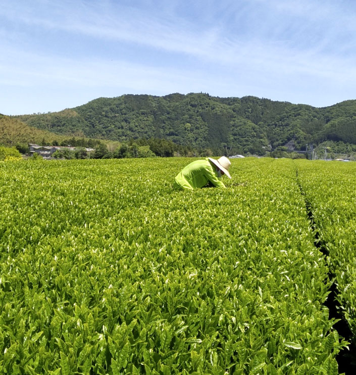自社茶園を運営し、契約農家への指導や肥培管理の研究に励む。