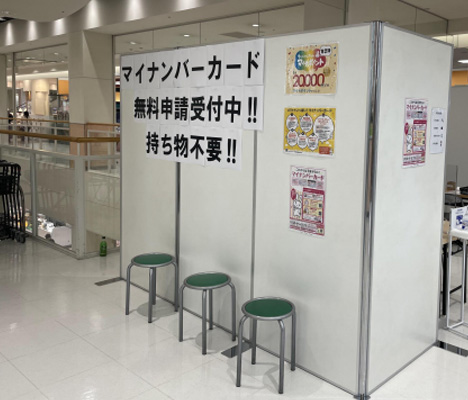 週末で人の集まるショッピングセンターの一角に場所をお借りして、週末の2日間で、マイナンバーカードの申請臨時窓口の運営をサポートいたしました。