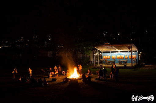 遊んで、働いて、温泉に⼊ったあとは星空のもと焚き⽕を囲んで仲間と語り合う。