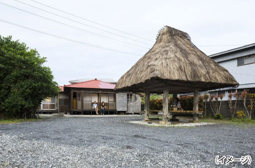 珍しい茅葺の高倉はしまの人も集う、団らんの場所