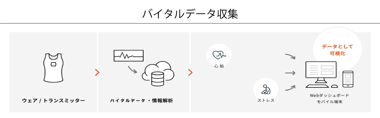 日常でのオフィスワークでバイタルデータを取得し、普段どのような状態で業務を行っているかデータの収集を行います。