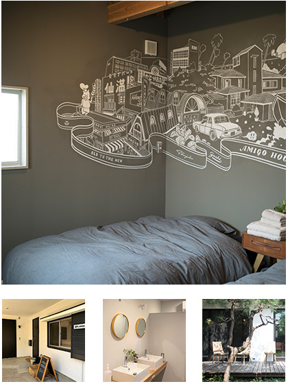 まさに逗子で暮らすように滞在できる宿泊施設。コワーキングスペースの2階が宿泊施設となっていて、1階のラウンジキッチンも共同で利用可能です。お部屋も清潔感があり、壁紙など、ところどころにちりばめられたおしゃれなデザインも魅力的。ウッドデッキのある庭やラウンジで、ここに集まる人と交流を持つのも楽しみの一つ。