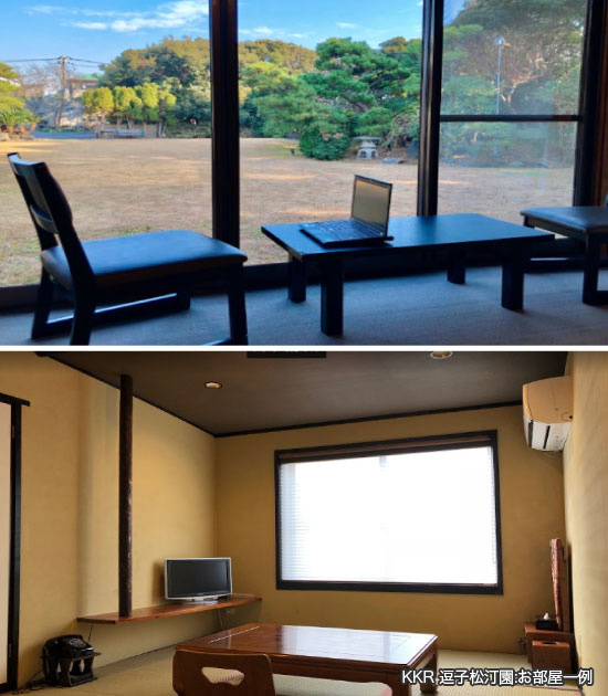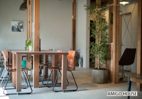 少人数であれば、松汀園すぐそばのAMIGO HOUSEもおススメ。松汀園の会議室と併せて利用すればミーティングも可能。