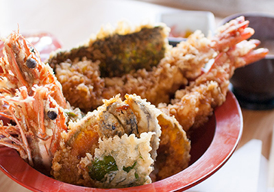 | 昼食 | 地産地消にこだわった「天麩羅まるみ」にてランチ | ![]() 天麩羅まるみの昼食例 |