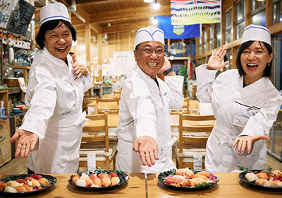 ゆりあげ港朝市にて寿司握り体験&昼食(握り5貫、手巻き2本程度)(約75分)