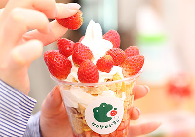 ケロケロの杜でイチゴ摘み取り&いちごパフェ作り体験(約50分)
