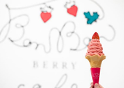 店内にはかわいい写真スポットが点在しており、SNS映えする写真を撮影できます。「いちご串」や「ボンボンベリーソフト」等と一緒に撮るのが人気となっています。