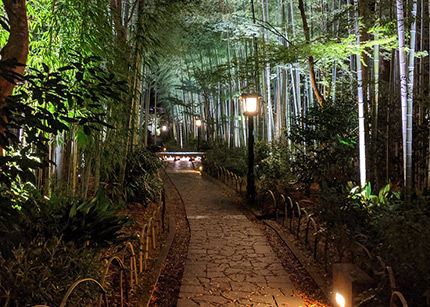 日没後はライトアップされ、幻想的な夜の散歩を楽しむことができます(ライトアップは日没~23時まで)。