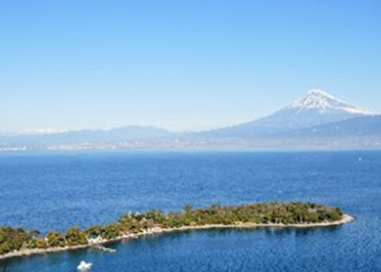 大瀬崎(おせざき)は別名琵琶島とも呼ばれる駿河湾に約1km突き出した岬で、海越しに日本一の富士山をのぞむ景色は古くから名勝の地と知られ、 広く海外にもその名を知られています。岬の先端には、海から間近にもかかわらず真水をたたえ、伊豆七不思議の一つに数えられる神池や、日本最北端の自然群生地で国の天然記念物となっているビャクシン樹林があります。