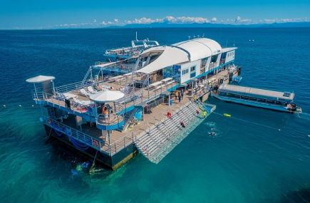 アウターリーフクルーズランチ付きクルーズでグレートバリアリーフを満喫!珊瑚再生プログラムのレクチャーや船内でのアボリジニ演奏など、手軽にケアンズのSDGsに触れることができます。 -