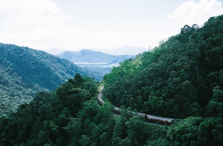 キュランダ鉄道原生林を抜けていくキュランダ鉄道は、約33㎞にわたる有名な観光鉄道。車窓からは自然の景色が目に飛び込んできます。