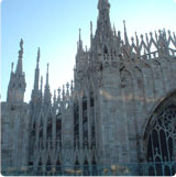 まず見ておきたいのが、イタリア最大のゴシック建築、ドゥオーモ。建物全体が芸術品といえるほど手の込んだ繊細な造りに、思わずうっとりしてしまいます。