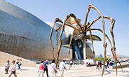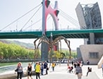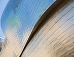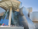 パピーの愛称で親しまれる生け花でつくられた犬の現代アートが入り口で迎えてくれる美術館。チタンでできた建物は、見る角度によってさまざまなモノを連想させるアートとなっています。 -