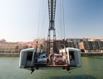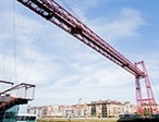 世界遺産である世界最古の運搬橋。吊り下げられたゴンドラは、今も人やクルマを対岸へ運び、エレベータで上がれば、全長164mを高さ約50mの景色を眺めながら渡ることもできます。 -